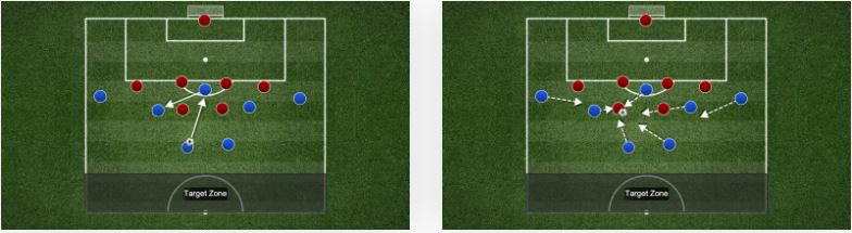 یک منطقه هدف یا دروازههای کوچک را در زمین بالاتر برای تیم مدافع تعریف میکند تا به آنجا ضد حمله کند.